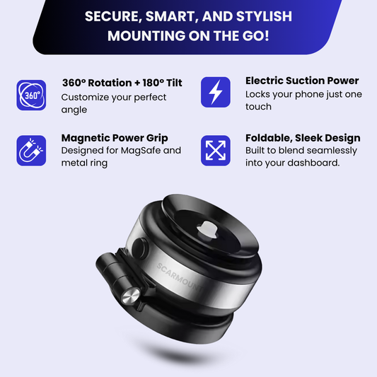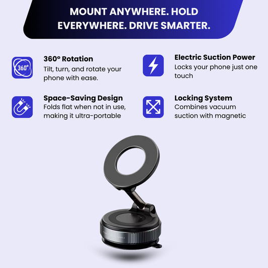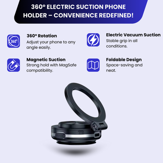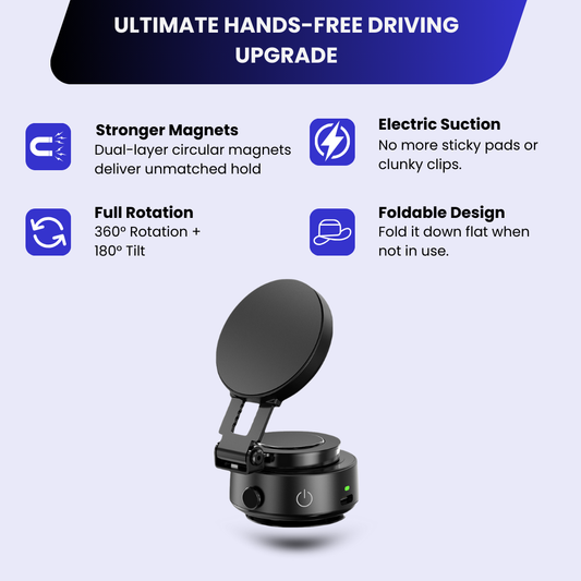 360° Electric Vacuum Magnetic Car Phone Holder - Ultra Strong Suction Adjustable Mount for All Smartphones & iPhone Models
