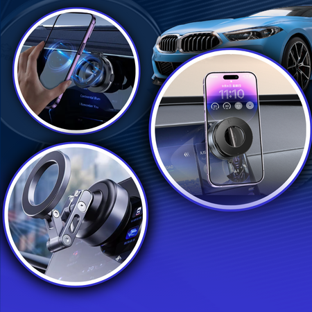 Vacuum Magnetic Car Phone Mount, 360° Rotatable & Stable, Strong Suction for Car & All Smooth Surfaces, Compatible with All Phone Types