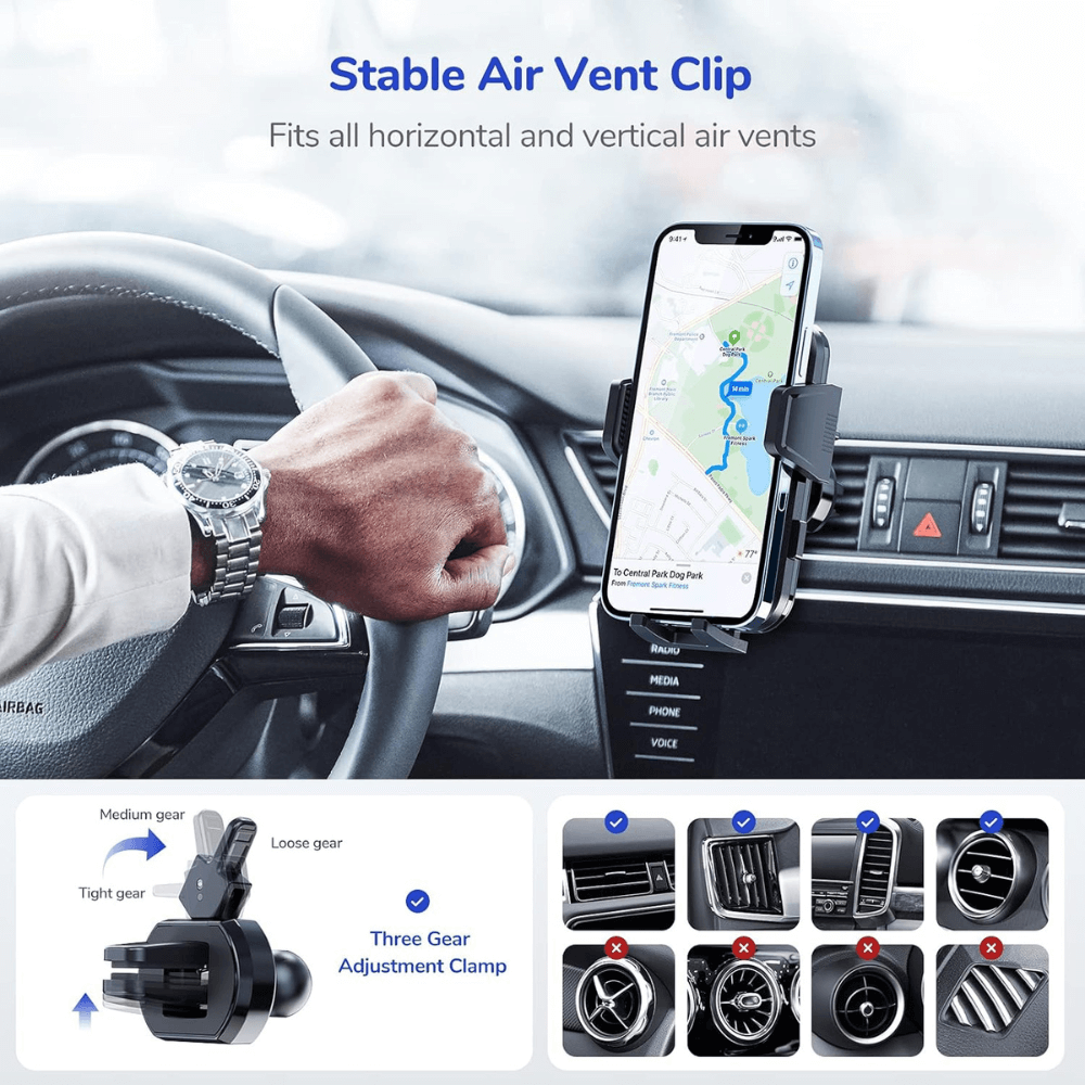 Mount it where it works best for you—dashboard, windshield, or air vent. Your setup, your way.